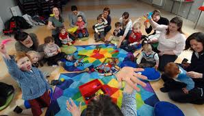 From their website, “Music Together is an internationally recognized early childhood music program for infants, toddlers, preschoolers, kindergarteners, and the adults who love them. First offered to the public in 1987, it pioneered the concept of a research based, developmentally appropriate early childhood music curriculum that strongly emphasizes and facilitates adult involvement. Music Together classes are based on the recognition that all children are musical.” Each 10-week session of music together has a different theme – sticks, maracas, flute, to name just a few. There is a “hello” song and a “goodbye” song that stay the same session to session, otherwise, it’s new material from one session to the next. Each family gets a songbook, and two copies of a CD which includes all the songs from that session – one CD for the car, one for at home. The shortened (6 week) summer session features favorites collected from each session. The Holiday session (3 weeks) features some holiday standards, as well as some original songs that encompass all of the holidays. For 45 minutes every week, Finn and I would sing and dance, and just be silly in a musical way. We would play instruments, and Finn would climb in the instrument box. We would shake colorful streamers, bounce balls, swing hula hoops, and (theoretically) rest on a pillow…all set to music!