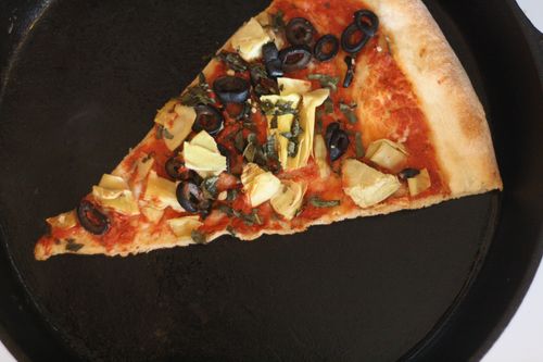 • Heat up leftover pizza in a nonstick skillet on top of the stove, set heat to med-low and heat till warm. This keeps the crust crispy. No soggy micro pizza. I saw this on the cooking channel and it really works.