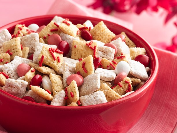 When my girls get home from school, they always have a snack. This year, their snack will be Valentines Day Chex Mix, thanks to BetterCrocker.com. Super easy and festive, this snack contains just a few ingredients including pink and red M&Ms, powdered sugar, Chex Cereal and sprinkles. So fun!