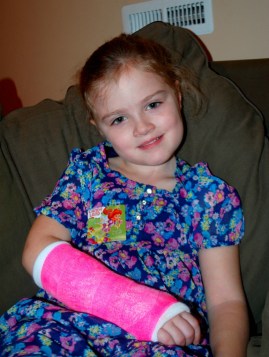 After a few minutes of whimpering, we realized she may have really hurt her wrist. It swelled a little bit and she was pretty upset about the possibility of having to go to the hospital. We knew it was a good idea to have them x-ray it for a possible break. I never would have guessed the first “casted” kid in my house would be Lucy. And something tells me it may not be the last cast we have around here.