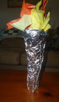 It was so great to see them work on this craft this week at our local Y.  The kids have been racing around with their torches for days.  This is a great thing to recreate with your little ones.