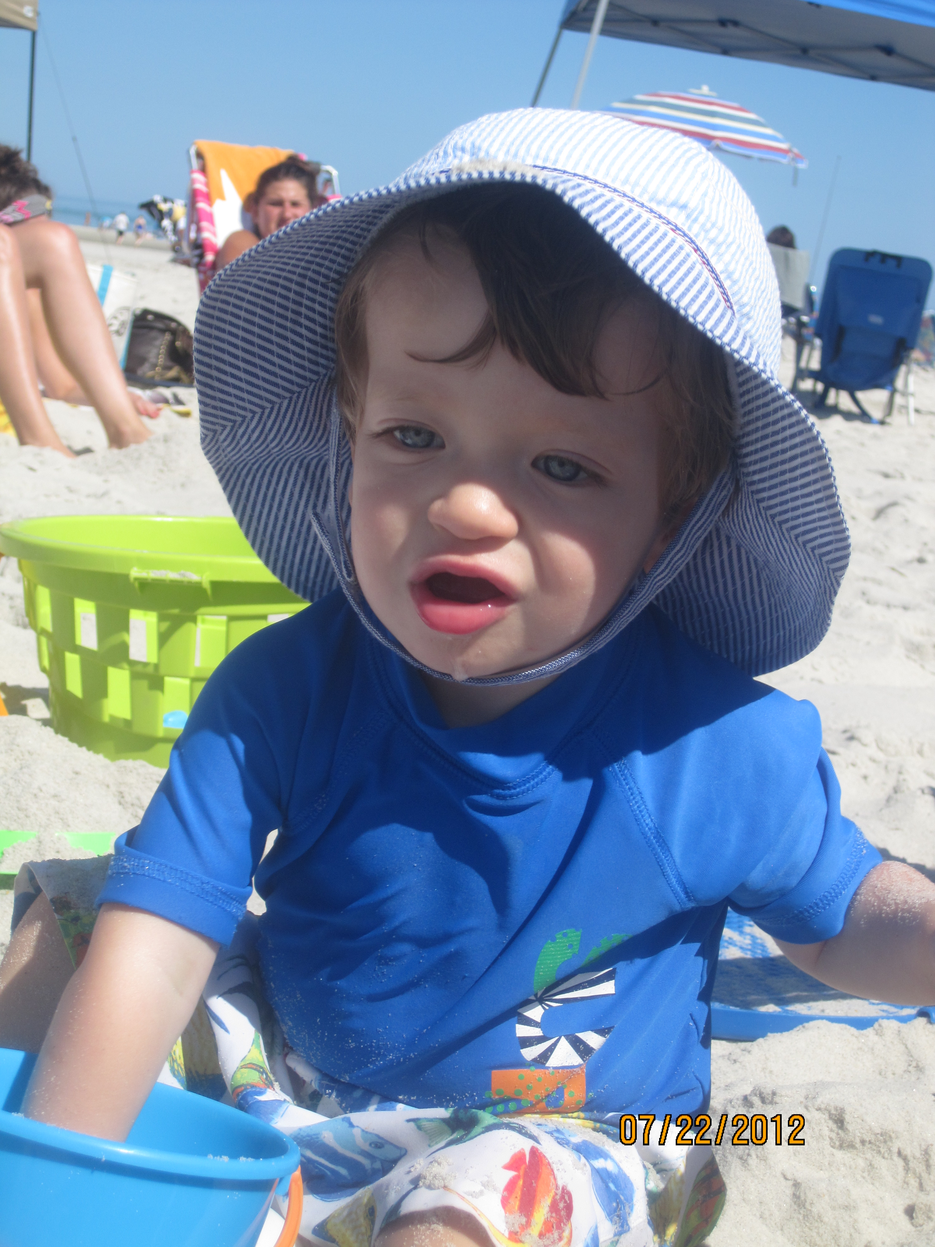 3. Good Hats for Everyone, Especially the Kids – Finn actually loves baseball hats, and wears them very willingly. Eamon…does not. My mom found a great hat for him this year, made by Wallaroo Kids. It has a wide brim around the entire hat, and a Velcro chin strap. Once the strap is fastened, he mostly accepts that it’s on to stay and ignores it from then on.
