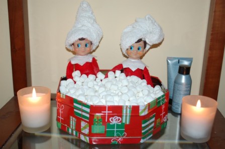 I get so excited to create holiday magic. I love to play Santa and to bombard my kids with all the joys of the holidays. A few years ago, the Elf on the Shelf entered our home and created quite a stir. I can’t wait to start Elving again this year. A few months ago, I compiled a list of new ideas so I could pull from it each night after the kids are fast asleep. Even if the kids think it’s no big deal, it’s pure fun for me. I love looking at the other inspiring elfers out there. You can find a lot of great ideas on Elf Antics on Facebook.