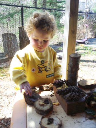 Each spring and summer, my children become happily engaged with our backyard mud kitchen.  As they do, I marvel at the way they tweak the design of our outdoor play kitchen – and their use of it – to match their current interests and developmental stages.  Last year, among other things, that involved lots of sorting, stacking, and imaginative play with cookie tree blocks.