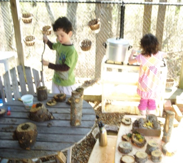 Mud kitchen Their moms comment , “I never imagined my (insert name) would be so content and calm for so long.”  Or, “Wow, I could bring our old plastic play kitchen outside and they might start playing with it again.”  Or, “How cool that they don’t even need a real kitchen to play with.”