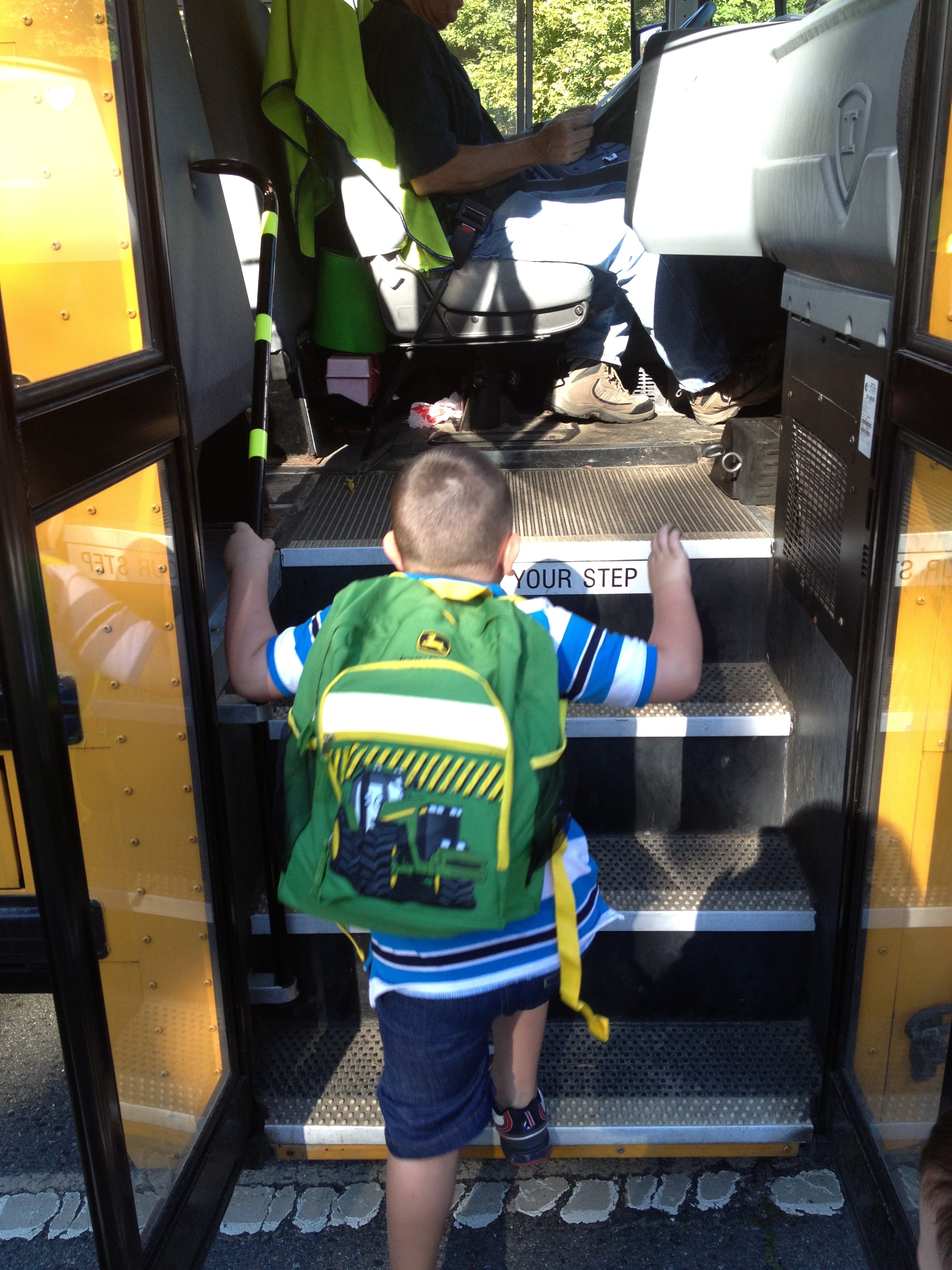 And then he came off the bus one day in tears. Someone had ripped his beloved “John Deere Tractor” backpack. Ripped the strap right off. My heart broke. How could this be On the bushappening?  What was happening on this bus?