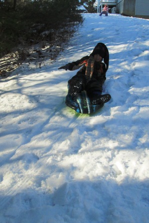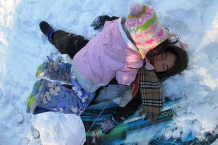 When my son crashed at the end of one sled run, he rolled over and just laid there. When I saw him prone and still, I was worried and went to check on him.