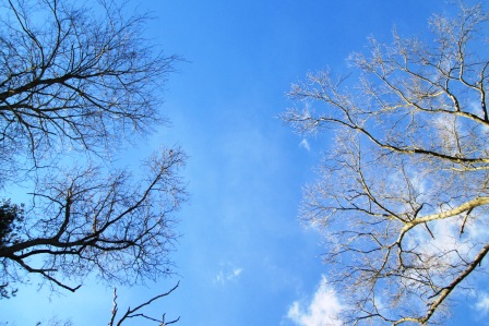 As we lay in our snowy but warm embrace, we noticed snow and ice that sparkled on the limbs above our heads as “branches like diamonds” (according to my boy) that hung about the welcoming sky.