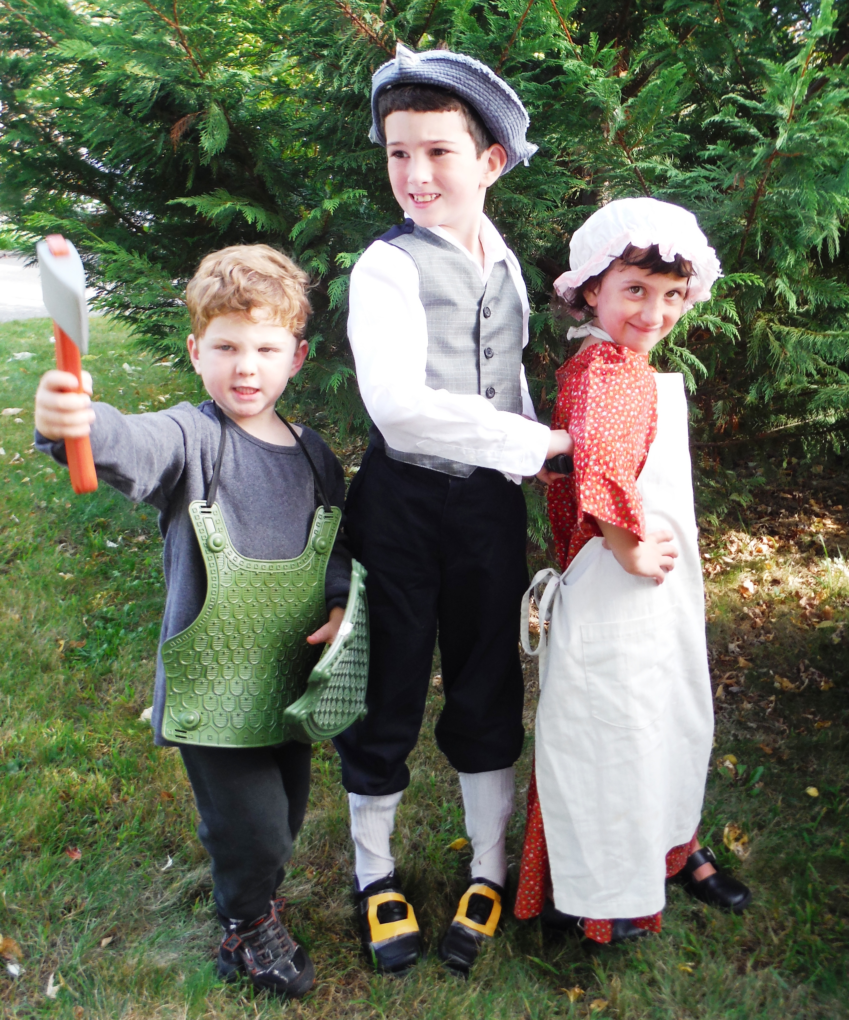 Martianne – We keep Halloween simple here, having the kids make costumes on their own, using things they have or things we can acquire at little to no expense. So, this year, Luke will be a Minuteman. Jack will be a knight. Nina will be either a pumpkin (with a borrowed costume) or her version of Molly Pitcher (a historical character). We also celebrate All Saints Day. The children are still deciding their costumes for that.