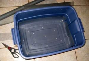 - One 8-10 gallon plastic storage boxes Cost: about $5 each