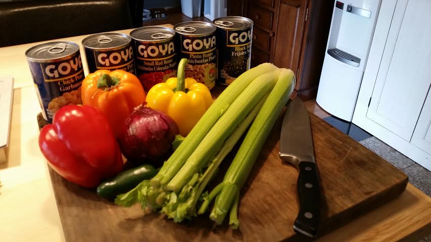 *You can add or substitute ingredients to your liking. Don’t like a certain kind of beans? Switch it out for another. The last time I made this, I forgot to get celery, but had an English cucumber, so added ½ of one, chopped. It was good! I also sometimes add the juice from 1 lime, or 1 lemon, whatever you have, and some fresh, chopped cilantro, very yummy additions. You really can’t go wrong with this one. Mangia!