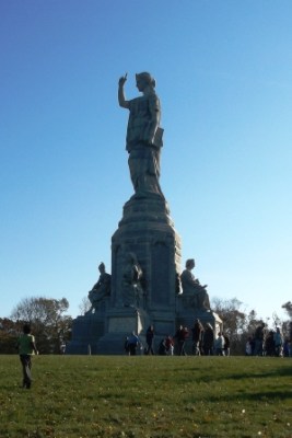 Several years ago, I shared a post on the Signature Moms Blog about “something to see during the Thanksgiving season.”I was referring to the 81 ft., solid granite Forefathers Monument over in Plymouth. Dubbed the “Statue of Liberty of Massachusetts,” it’s truly impressive and makes a fantastic location for a picnic on a sunny autumn day. Whether for religious, historical, or artistic reasons, the monument itself is worth a gander and the hilltop park it sits in provides ample space for lounging and playing.