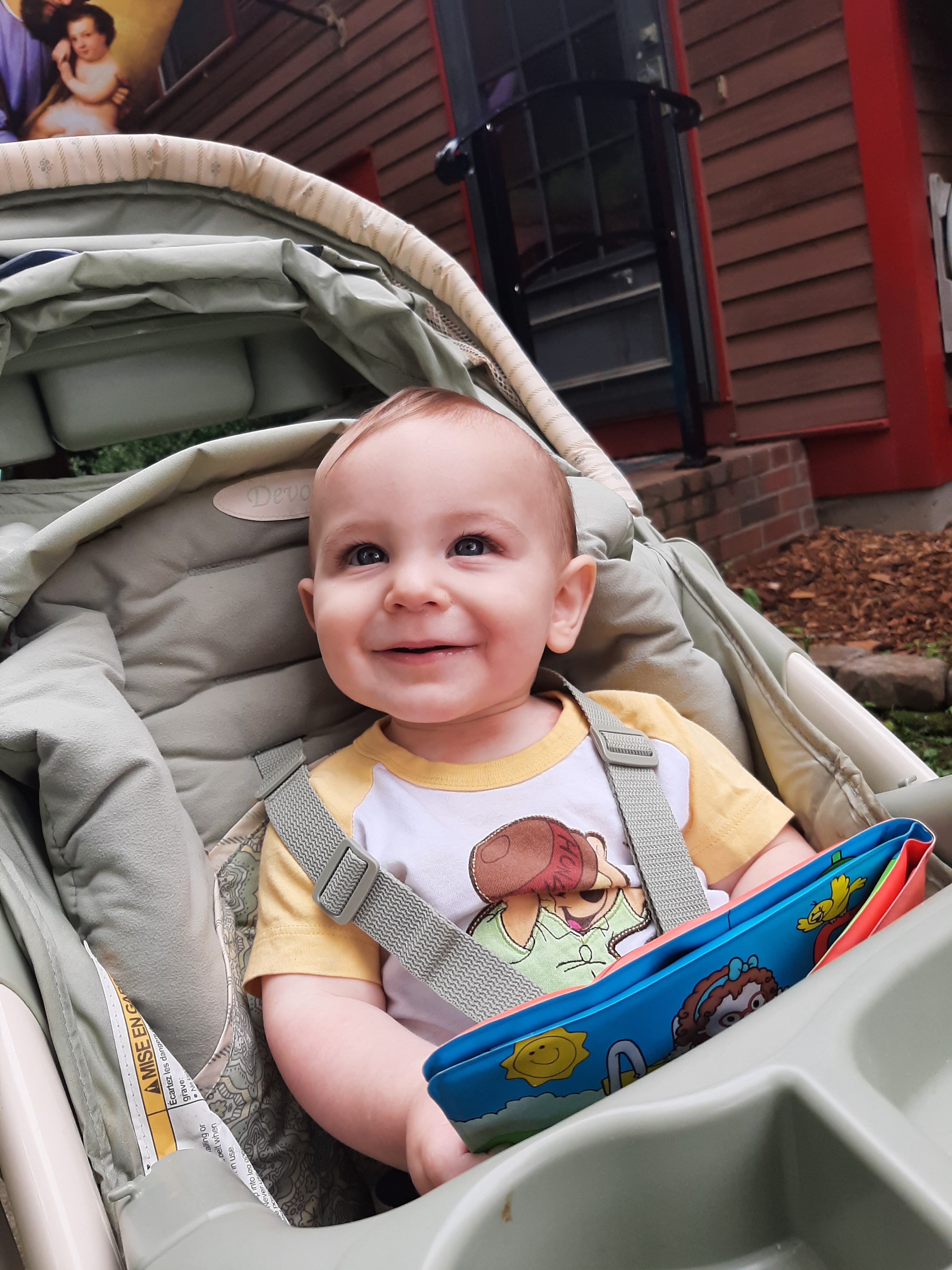 Fourth, he loves the praise of, “Good job, Henry,” and the accompanying cheers or applause so much, that he started saying “good job!” to himself when he identified a card or carried a bunch around with him. “Yay, yay, YAY!” became his favorite new cheer. This spirit was wonderfully contagious. He began cheering us as well. Whether we located an alphabet flashcard, tossed an item in the trash, or poured him some water in a cup, baby Henry was quick to clap and cheer. And, at the end of the day, who doesn’t want the zeal and joy of a “yay, yay, YAY!”