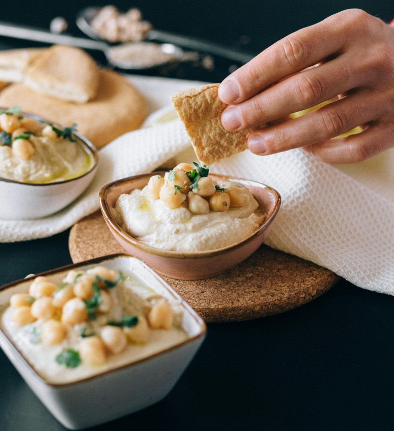 Hummus: a Middle Eastern spread, made from chickpeas, is a delicious dip for veggies as a snack or an alternative for mayonnaise on a sandwich.