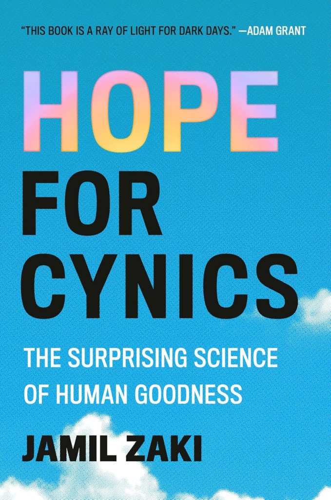 This more active view of hope is embodied in the new book Hope for Cynics: The Surprising Science of Human Goodness by Jamil Zaki. The author points out “Optimism is idealistic; hope is practical. It gives people a glimpse of a better world and pushes them to fight for it.” Zaki admits to having been a “cynic,” not trusting in others and holding a fairly negative view of the world. But, as he studied the research, he realized that skeptics question assumptions to determine who they can trust and that learning to trust in people and recognize the good in the world can restore and foster hope.